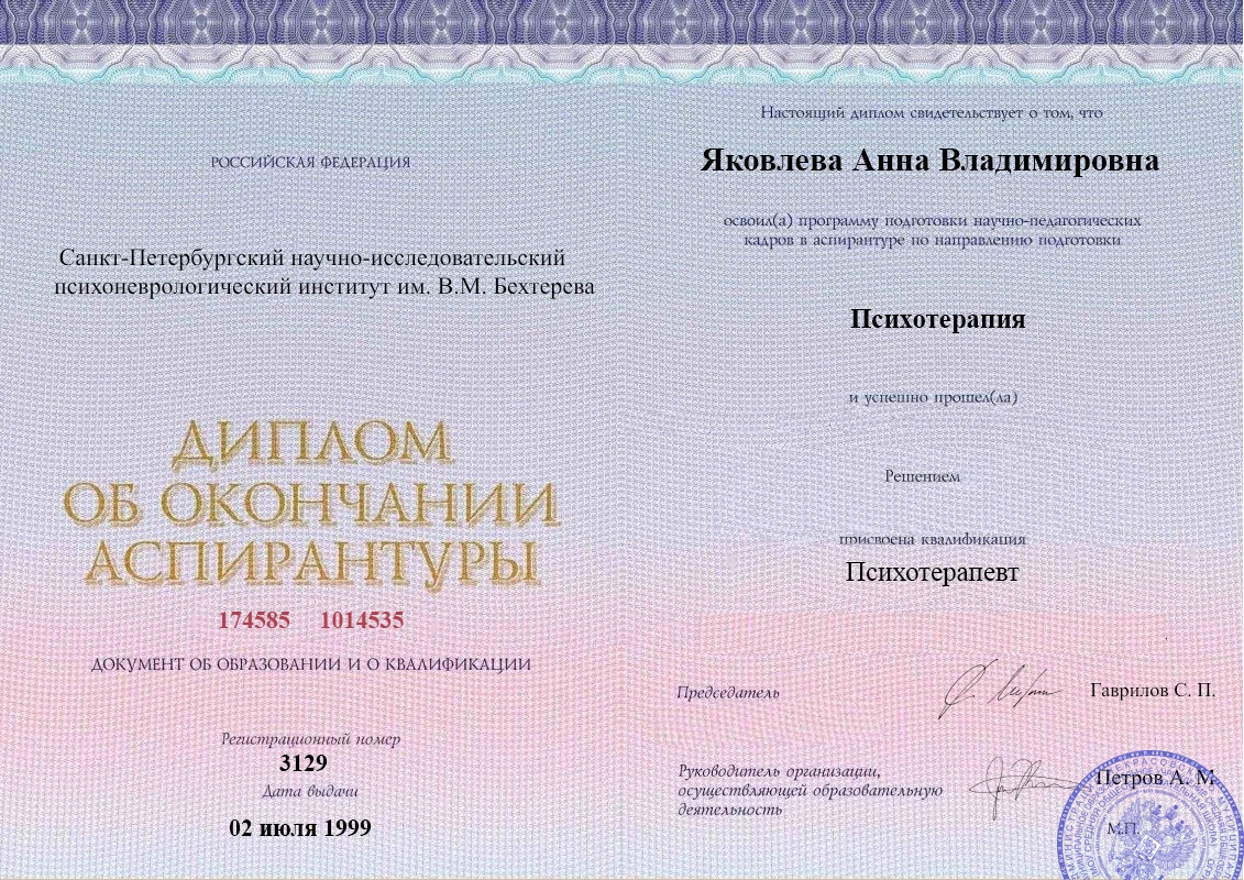 • Московский государственный университет имени Ломоносова МГУ (психотерапия).